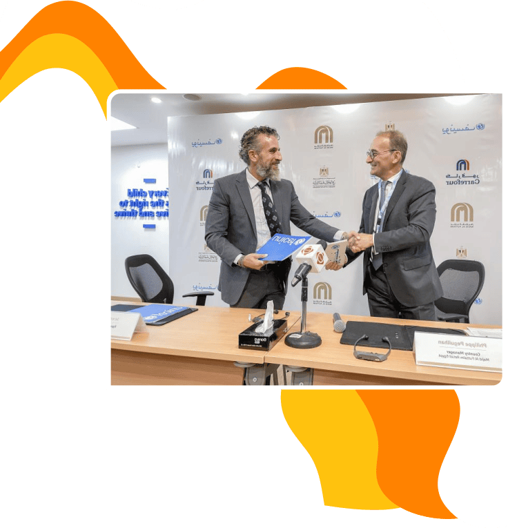 القاهرة، مصر، 16 أكتوبر 2022: تم اليوم توقيع مذكرة تفاهم بين منظمة الأمم المتحدة للطفولة (اليونيسف) وماجد الفطيم مصر، وذلك بالتعاون الوثيق مع وزارة التضامن الاجتماعي. وتهدف هذه الشراكة، الممتدة على مدار عامين، إلى إطلاق برنامج لتأهيل الأطفال والشباب وتنمية مهاراتهم، والذي سيتم تنفيذه من خلال كارفور المملوك والمشغَّل من قبل شركة ماجد الفطيم في مصر.